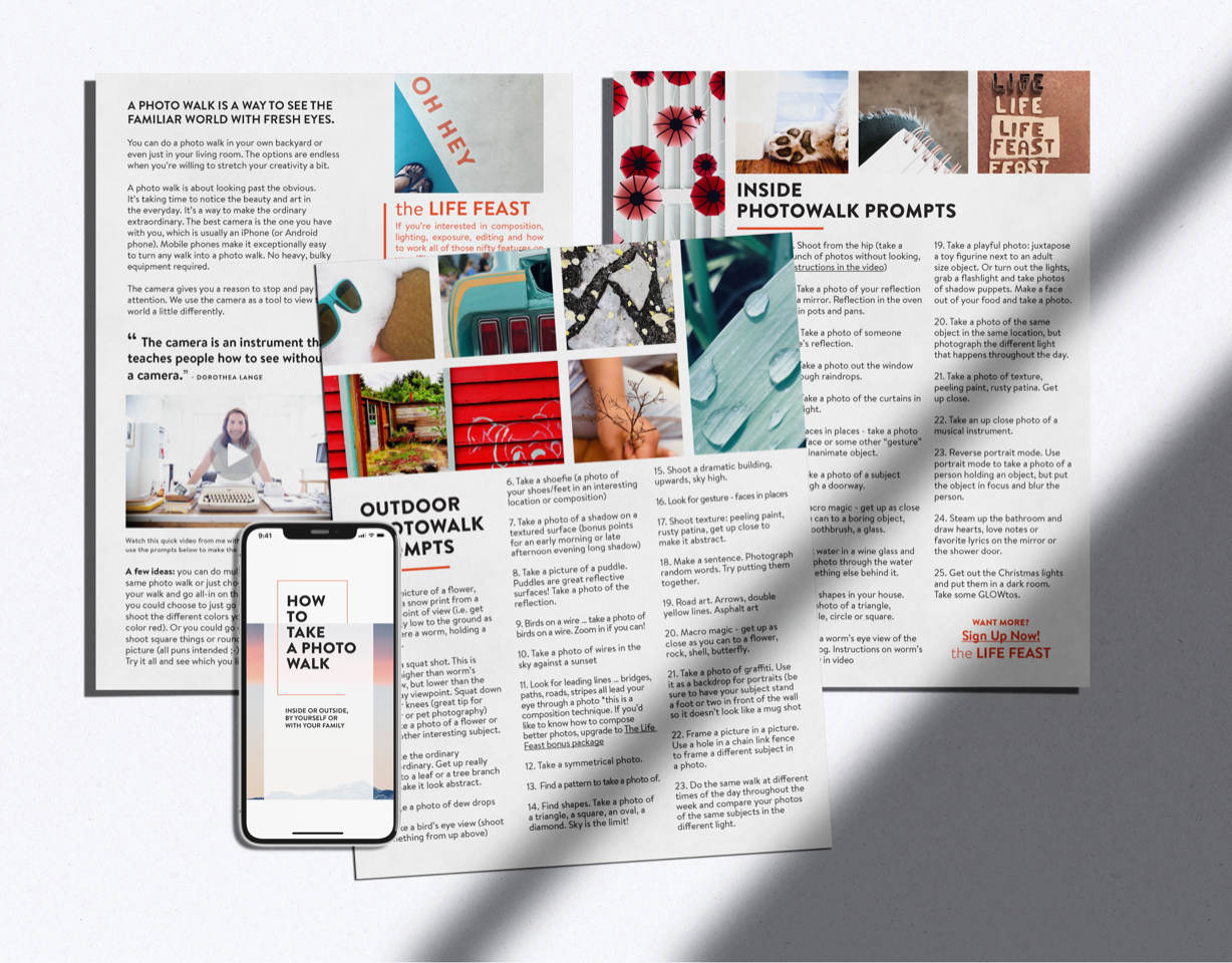 If you love the photowalk guide, then join the Life Feast! It's a mashup of curiosity, awe, creativity and joy that will get you out of your inbox and into your life.